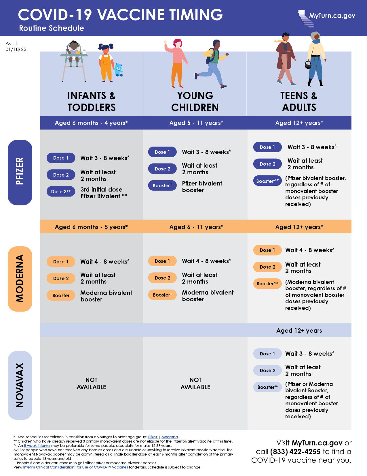 Featured are timelines designed for folks to navigate COVID-19 Vaccination dosage scheduling.